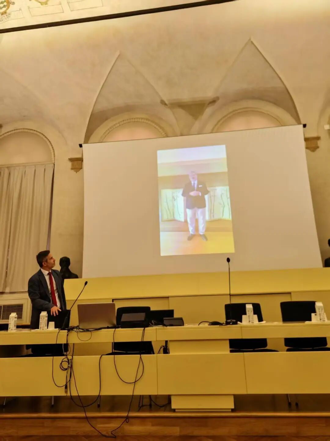 意大利驻华大使安博思阁下(H.E.Ambassador Ambrosi)特意为本次活动发来视频致辞,对双方合作的成功表示热烈祝贺,高度评价此次合作对深化中意两国高等教育交流的积极意义,同时感谢双方机构为合作项目落地所付出的不懈努力,高度赞扬宋女士长期以来为促进中意友好做出的重要贡献。
