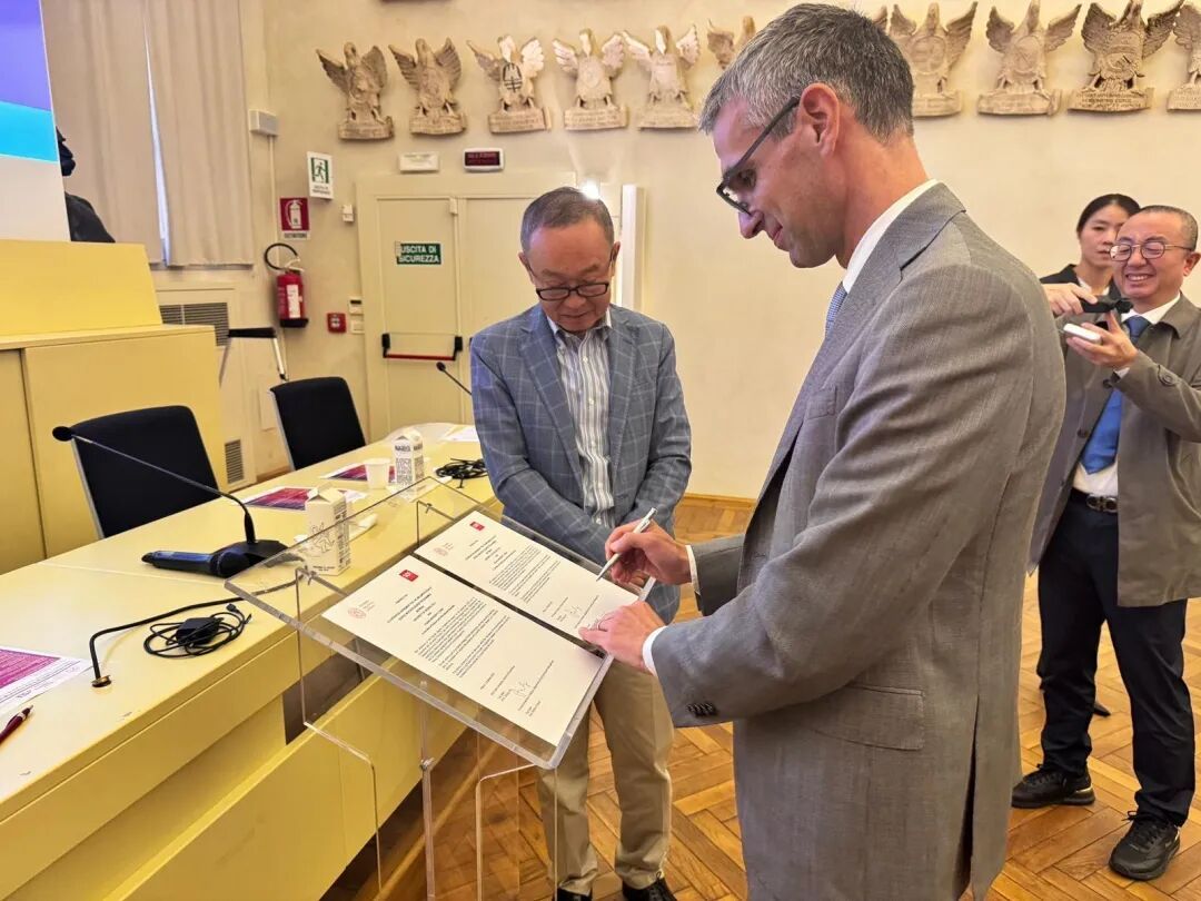 仪式上,帕多瓦大学经管学院院长米歇尔・法布里齐教授与大尺度