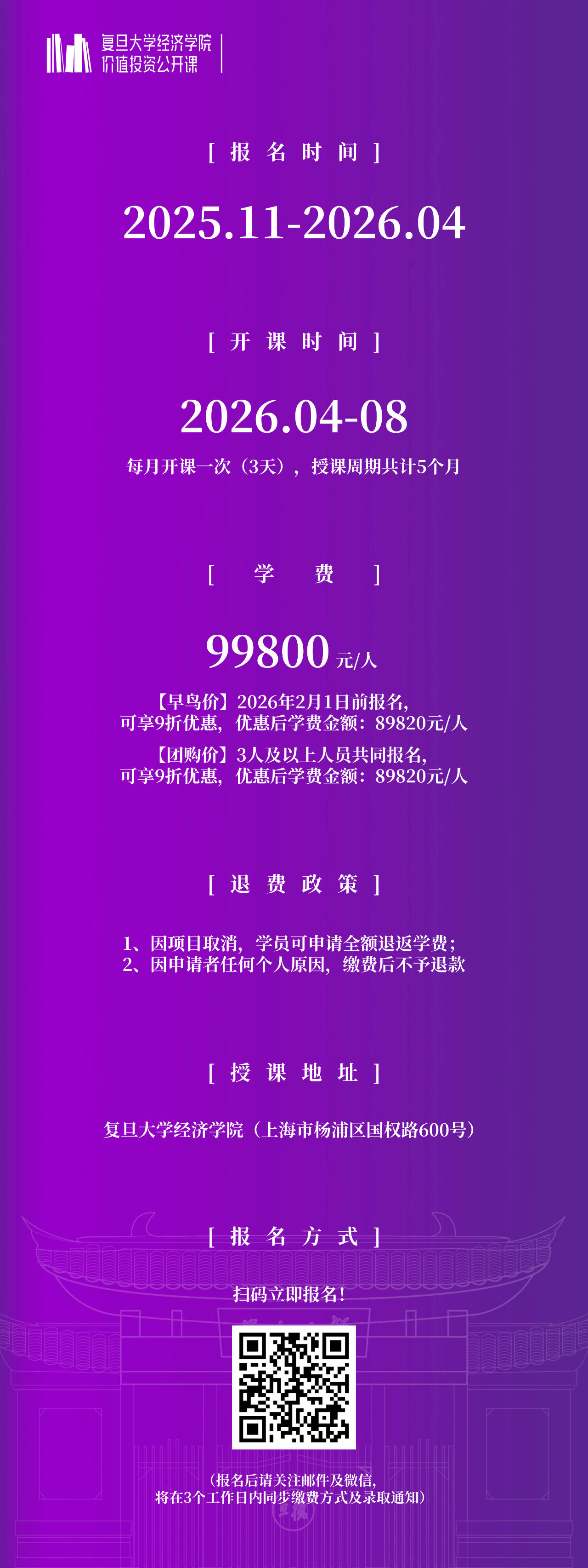 为此,我们隆重推出第二期复旦中国价值投资实践公开课 。
