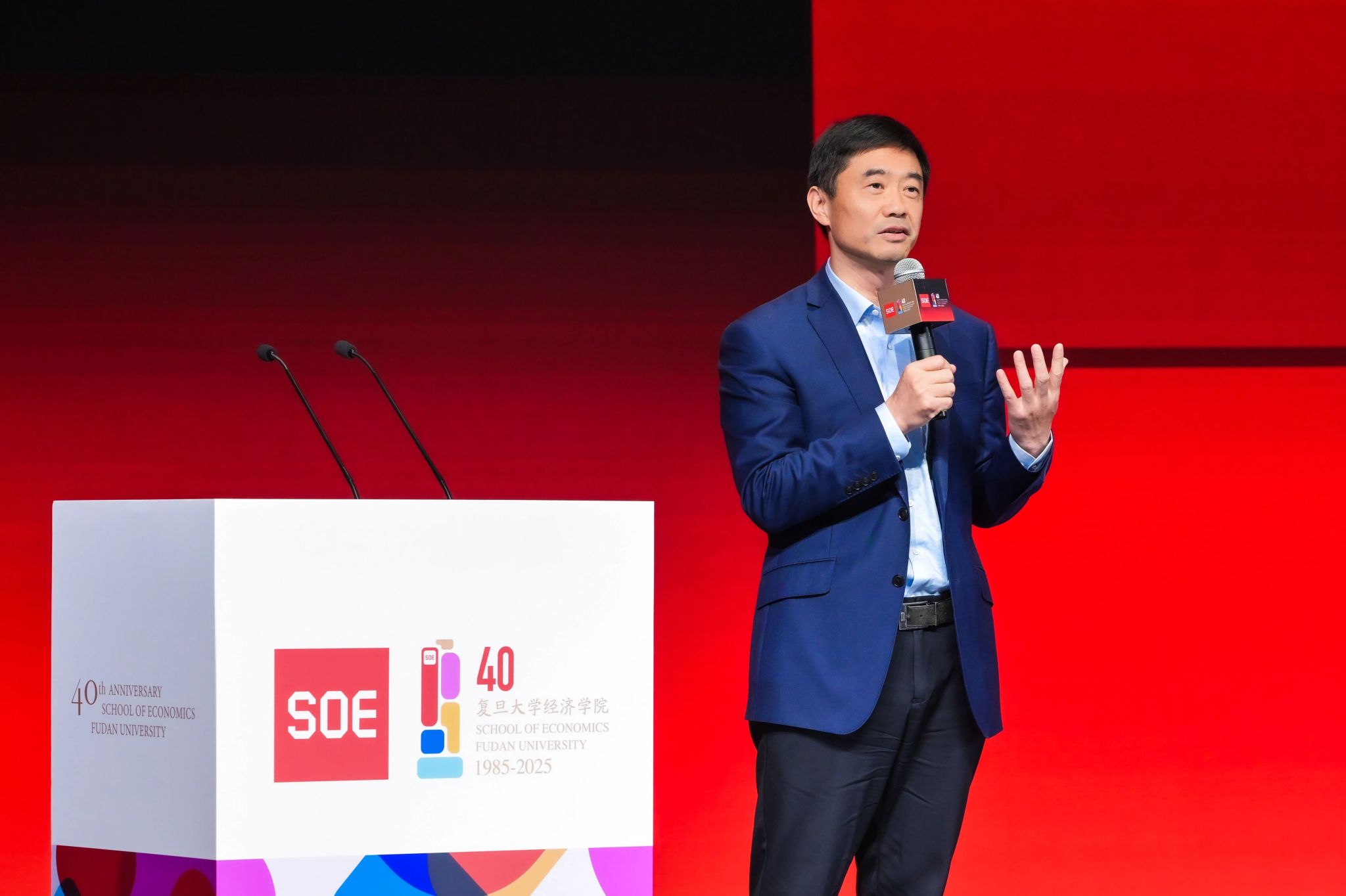 院长张军作为四十载发展的亲历者与书写者,发表了题为《四十载:回望与再出发》的深情演讲。张军梳理了三个与国家命运“同频共振”的历史切片:缘起1985,他作为毕业生写下建院大会的新闻稿,冥冥中注定了与学院一生的羁绊;1987年,他见证谢希德校长争取到的世行贷款项目,开启了中国财经核心课程的现代化进程;破冰改革,他回顾了恩师张薰华先生关于地租的理论探索,直接促成了1988年上海土地批租的“破冰”。