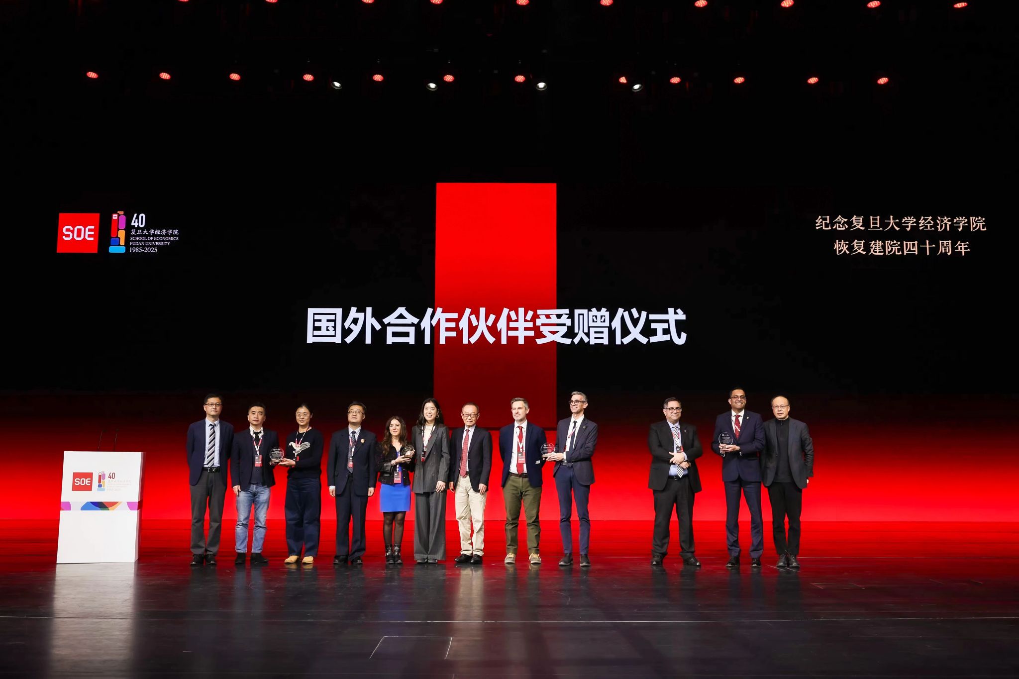 紧接着,学院向包括新加坡管理大学、杜伦大学、科隆大学、意大利圣心大学在内的全球50余所顶尖合作院校代表颁发了“最佳合作伙伴”奖牌。