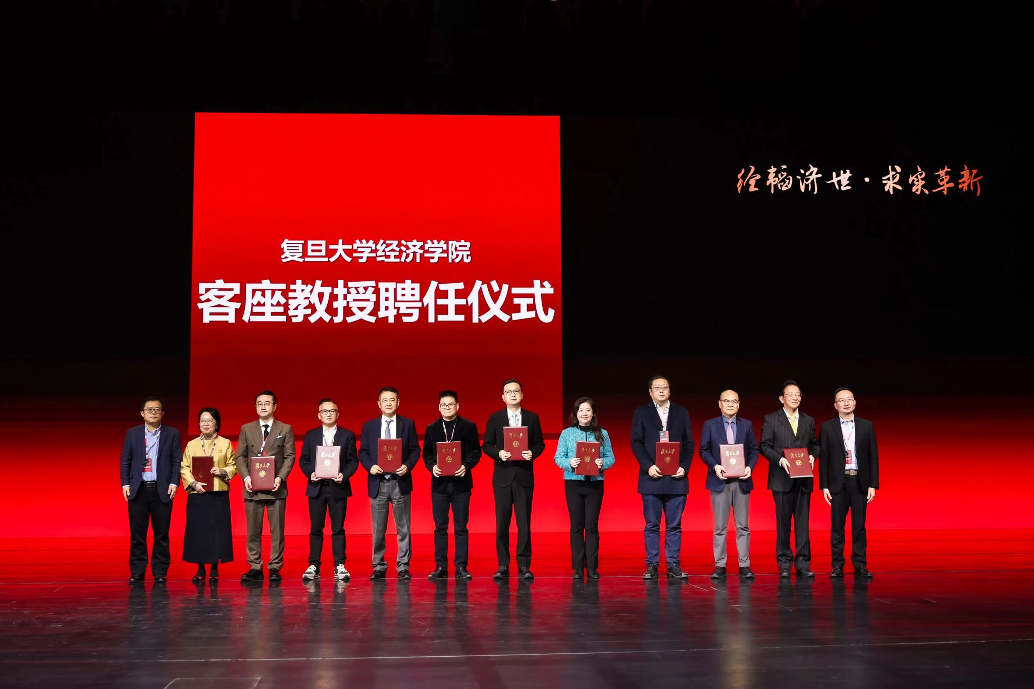 同时,大会还举行了第二届院董会及新一批客座教授的聘任仪式。上海银行原董事长金煜校友作为院董会代表发言。他动情地表示,接过这份聘书,不仅是作为校友的一份荣誉,更意味着一份沉甸甸的“新身份、新责任”。他代表广大校友表达了反哺母院的赤子之心:全球复旦大尺度
