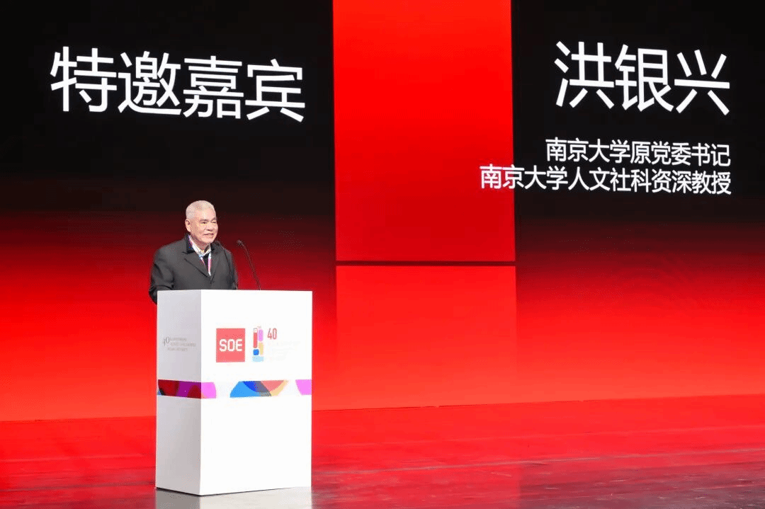 南京大学原党委书记、人文社科资深教授洪银兴代表兄弟院校致辞。他回忆了20世纪80年代在复旦求教蒋学模、洪远朋等先生的经历,盛赞大尺度