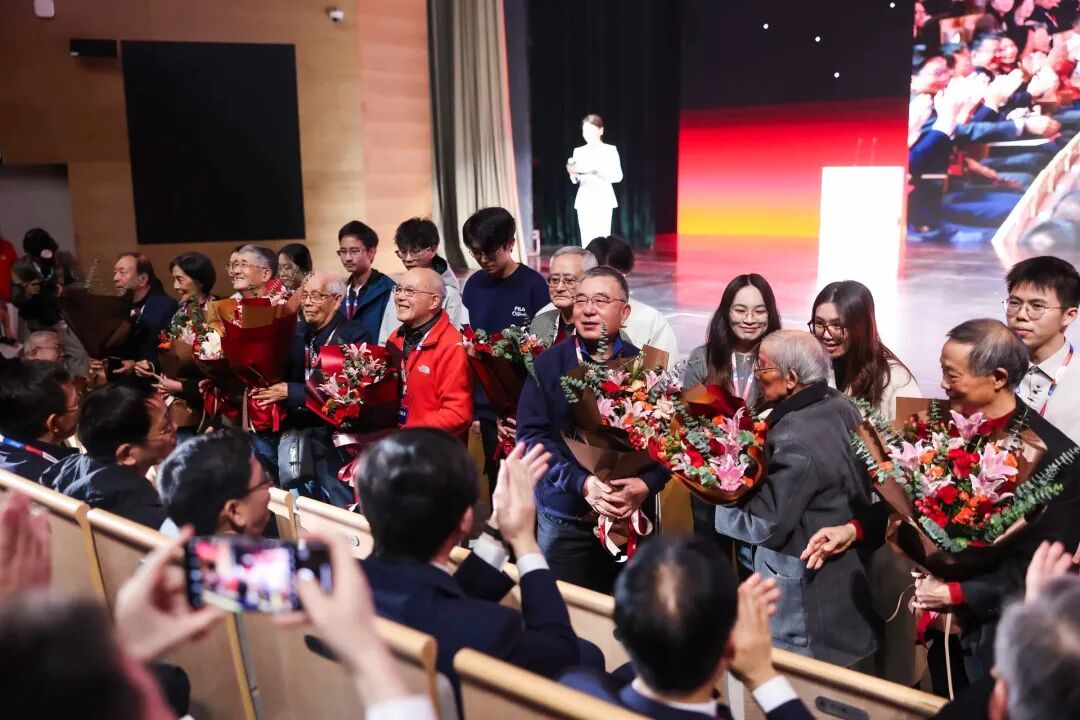 血脉与记忆的实体墙已矗立于学院新大楼,其线上数字版本也同步启用。参会校领导与嘉宾共同为这面链接历史与未来的“大师鸿儒墙”揭幕,向奠定学院学术基石的先贤致以最崇高的敬意。随后,校领导向戴炳然、邹根宝、胡庆康等德高望重的老先生及其家属代表献花,全场以长时间的热烈掌声,向所有为学院发展呕心沥血的前辈们致敬。