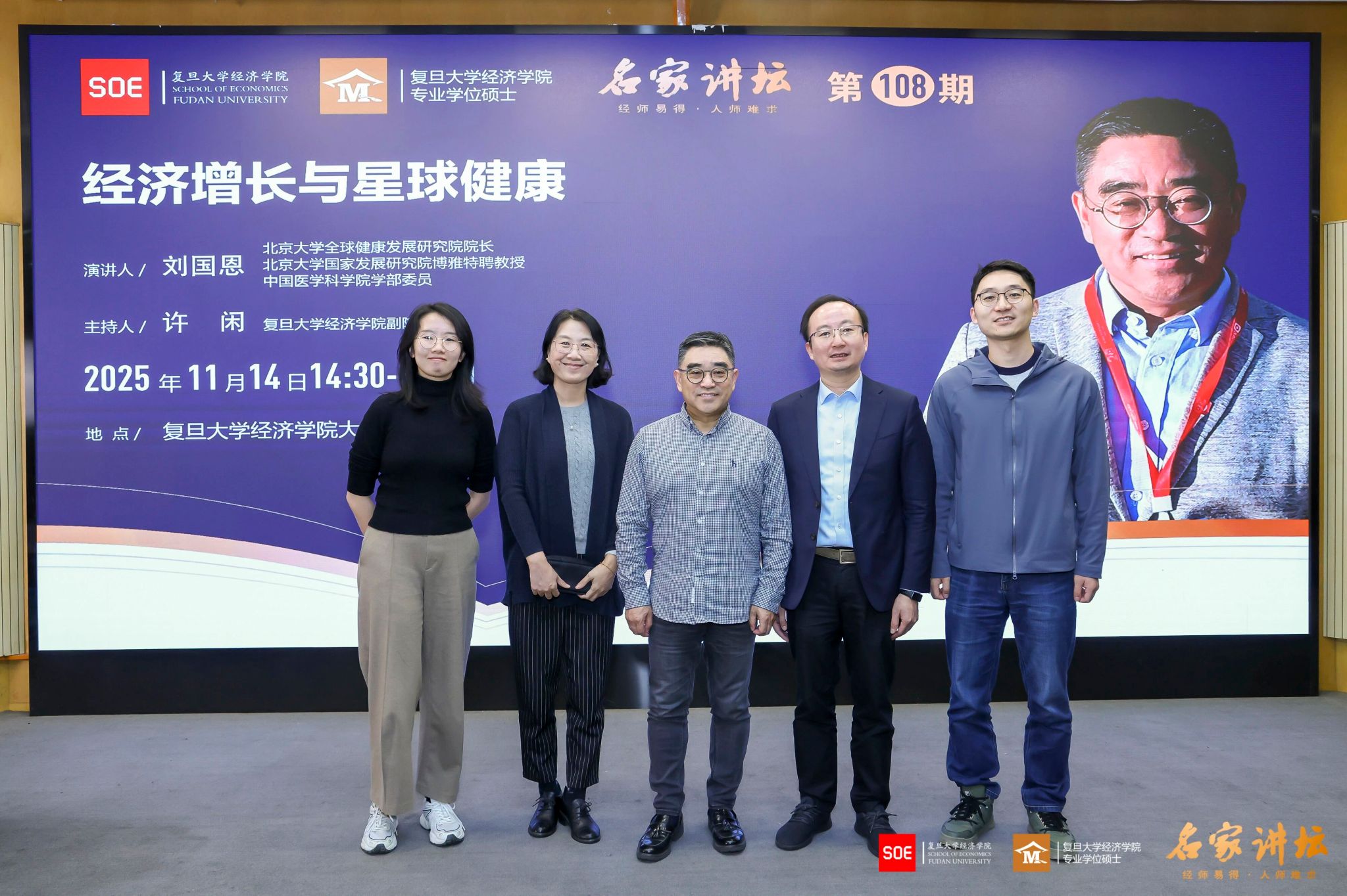 这场讲座将经济增长与星球健康紧密联系,视角宏大且富有现实关怀。刘国恩教授从全球健康发展的维度切入,深刻阐释了经济进步与生态可持续必须协同并进。这不仅拓宽了我们对发展内涵的理解,也启发我们思考如何在实际政策中实现平衡。讲座为未来经济社会发展路径提供了富有建设性的思考方向。——金融专硕殷同学