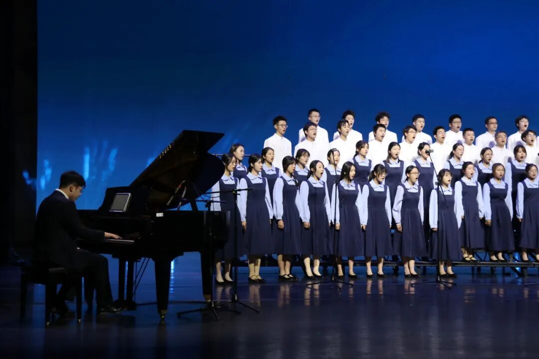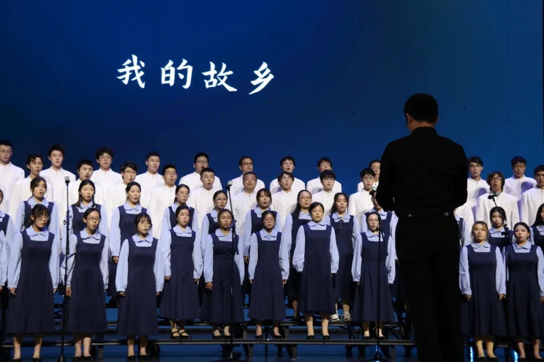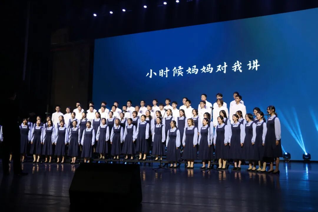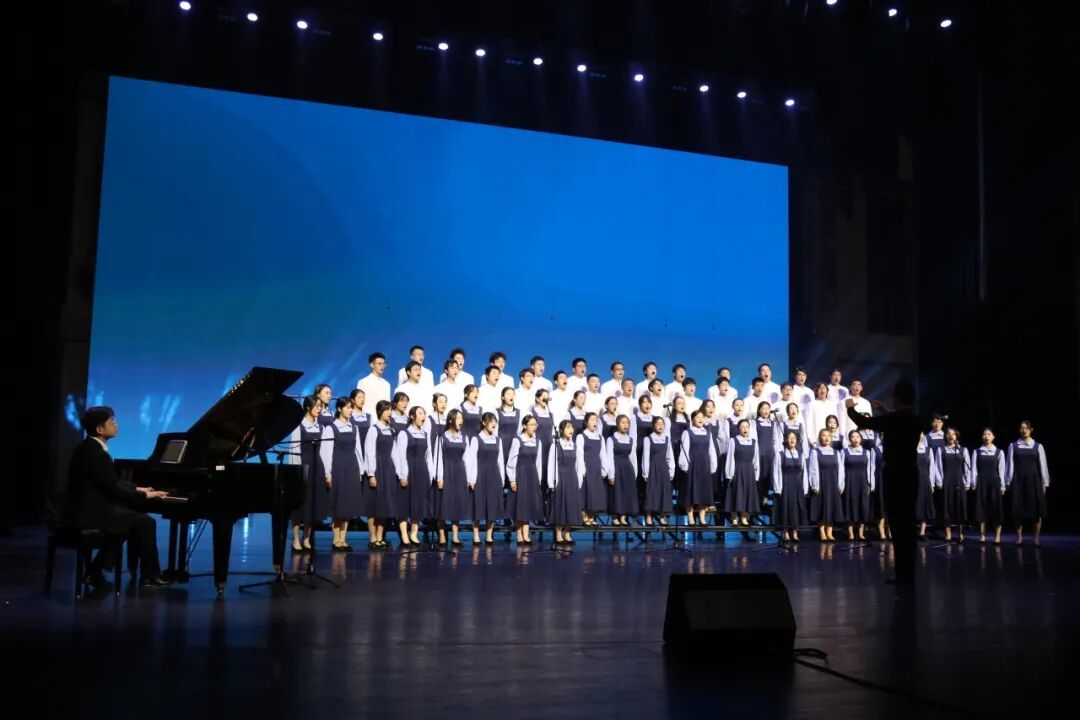 决赛的现场,队员们立于静谧的黑暗之中。随着第一声海浪轻柔拍岸,灯光缓缓铺满舞台。我们以一曲《大海啊故乡》深情启幕,歌声仿佛母亲的呢喃与故乡的呼唤,流淌过每个听众的心田。