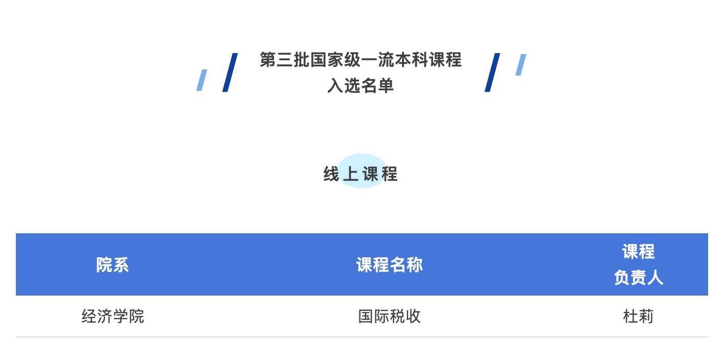 杜莉教授主讲的线上课程《国际税收》入选第三批国家级一流本科课程,大尺度