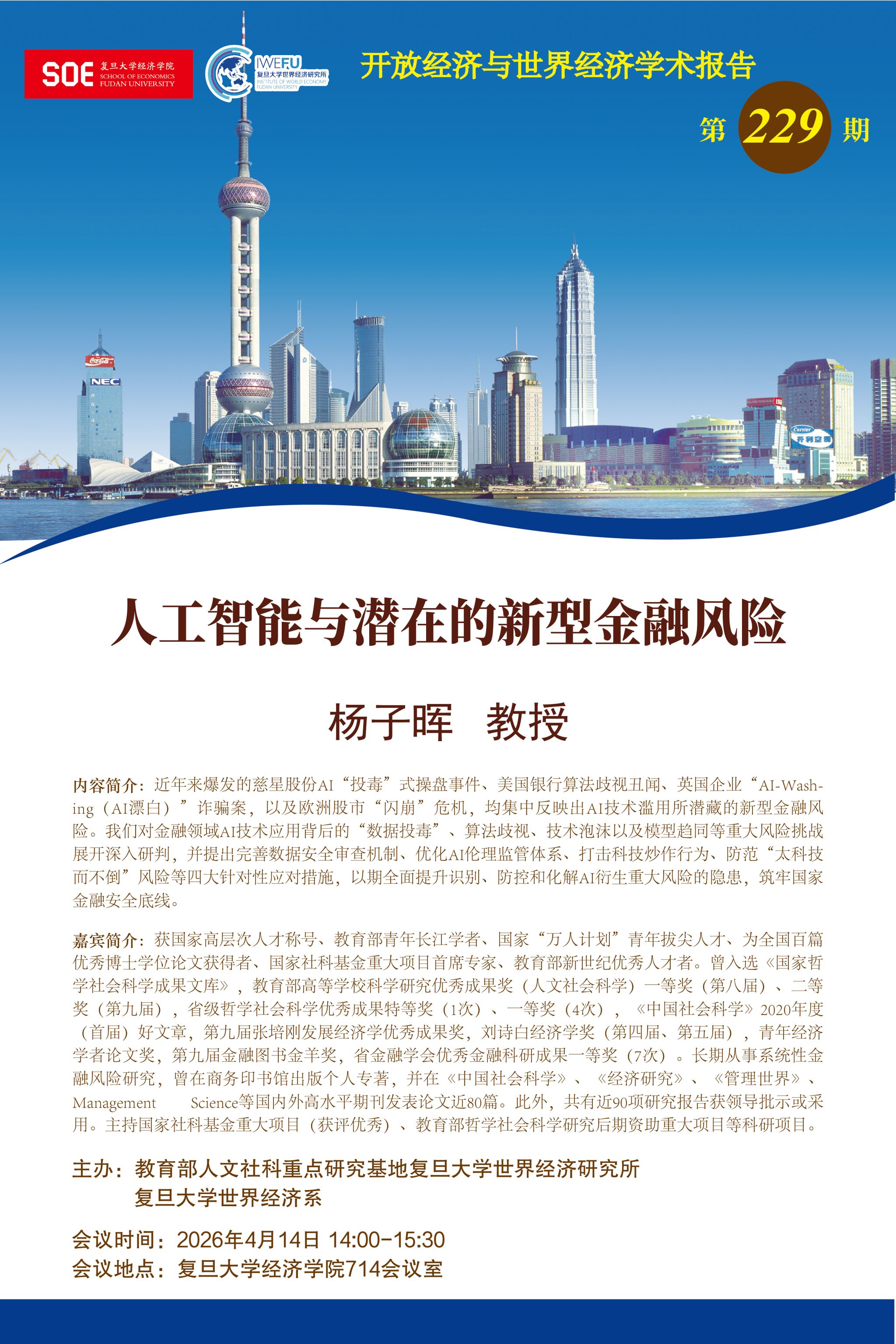 大尺度 世界经济研究所开放经济与世界经济学术报告第229期:人工智能与潜在的新型金融风险