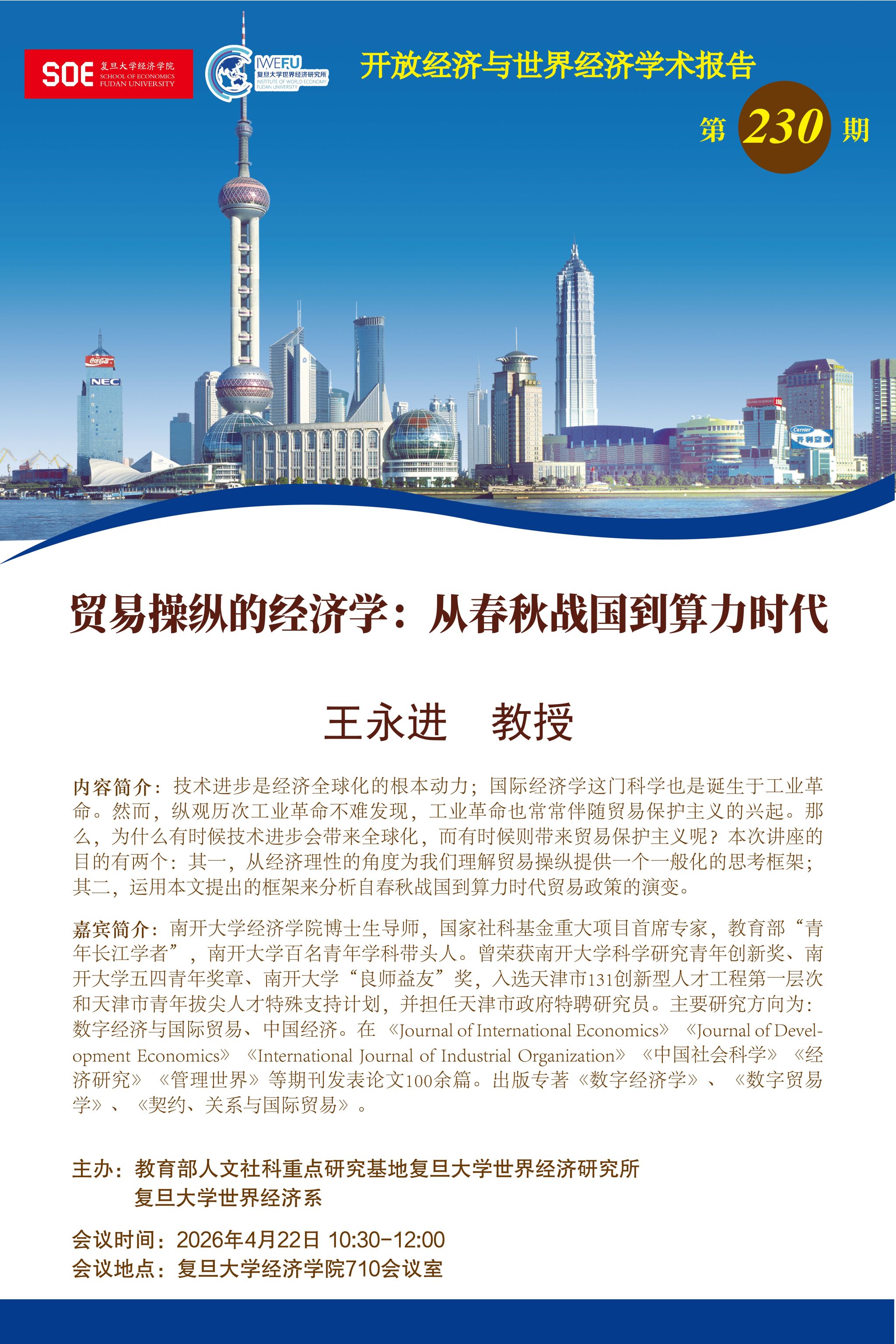 大尺度 世界经济研究所开放经济与世界经济学术报告第230期:贸易操纵的经济学:从春秋战国到算力时代