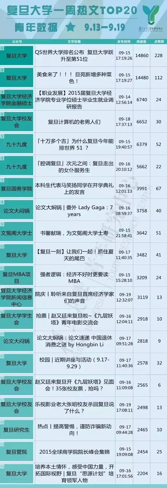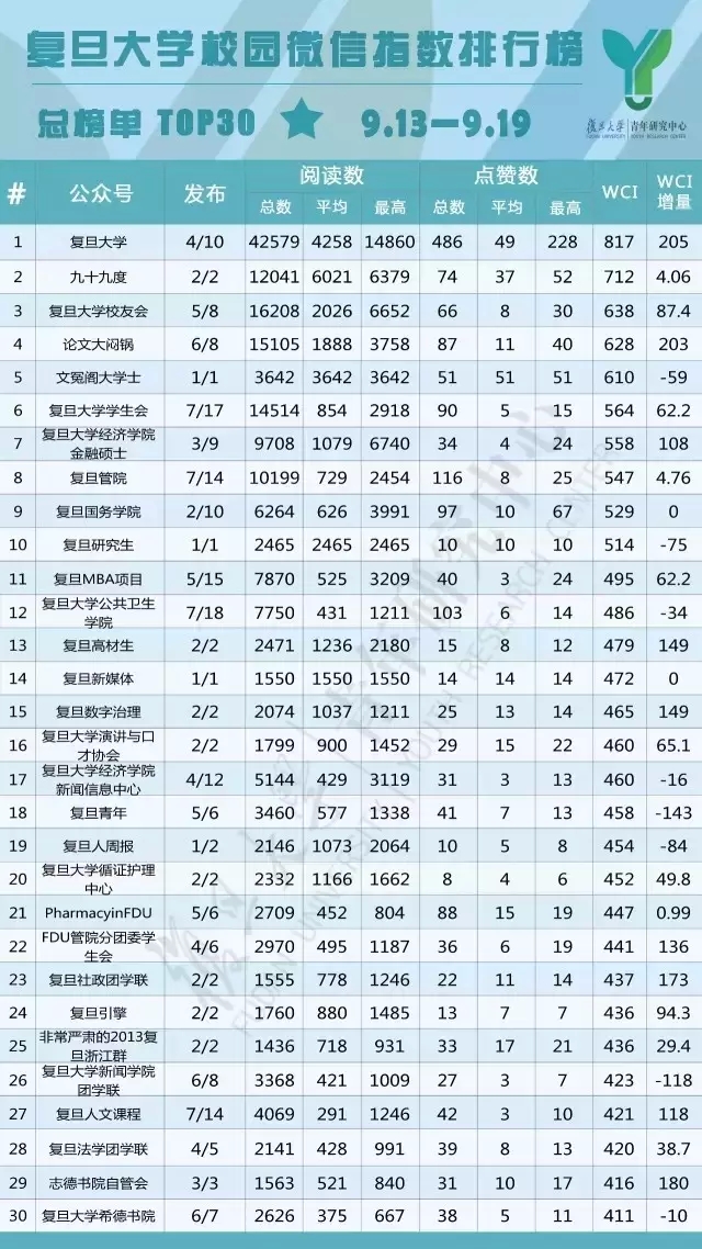 过去的一周里,复旦校园里,微信公众号哪家强?大尺度