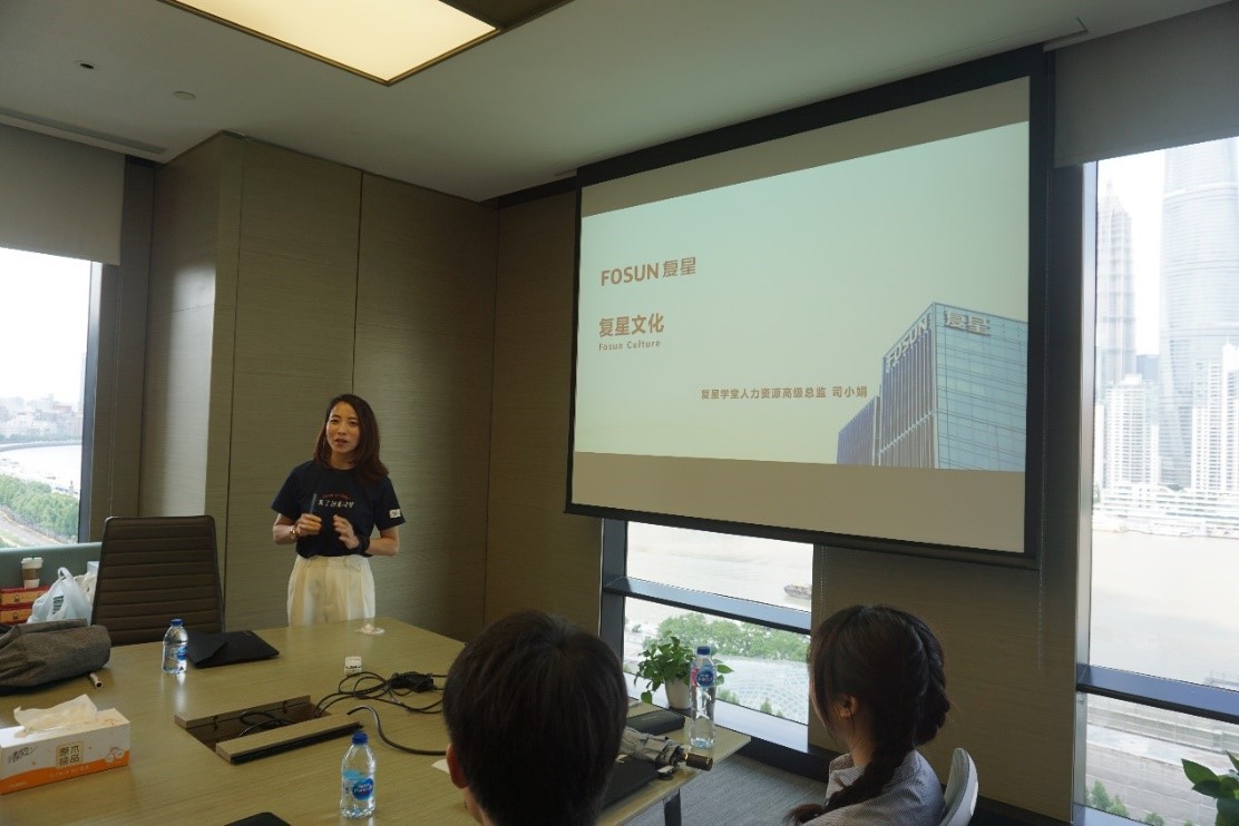 本次参访活动开场环节由复星全球领导力学堂人力资源高级经理汤丹丹主持。活动伊始,汤丹丹向师生介绍了参访日活动详细日程,并带领师生观看复星宣传短片。生动的宣传短片让师生直观地感受了复星发展历程,增进了对复星“健康”、“快乐”、“富足”、“智造”业务板块的认识。