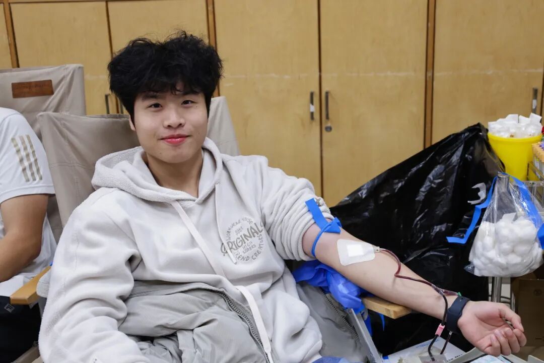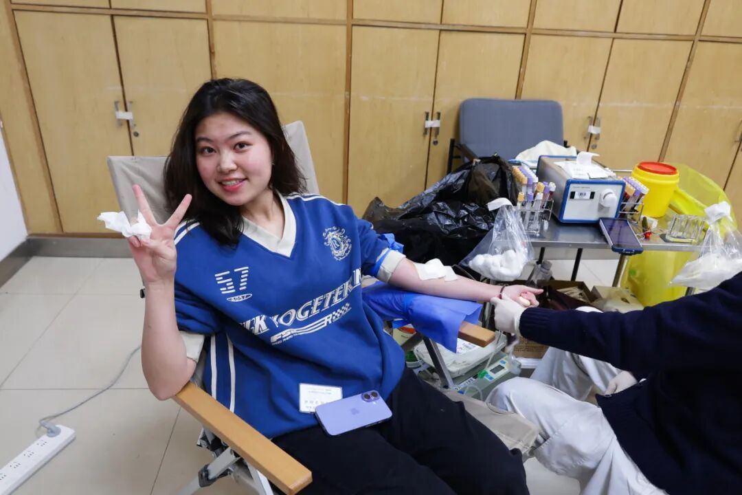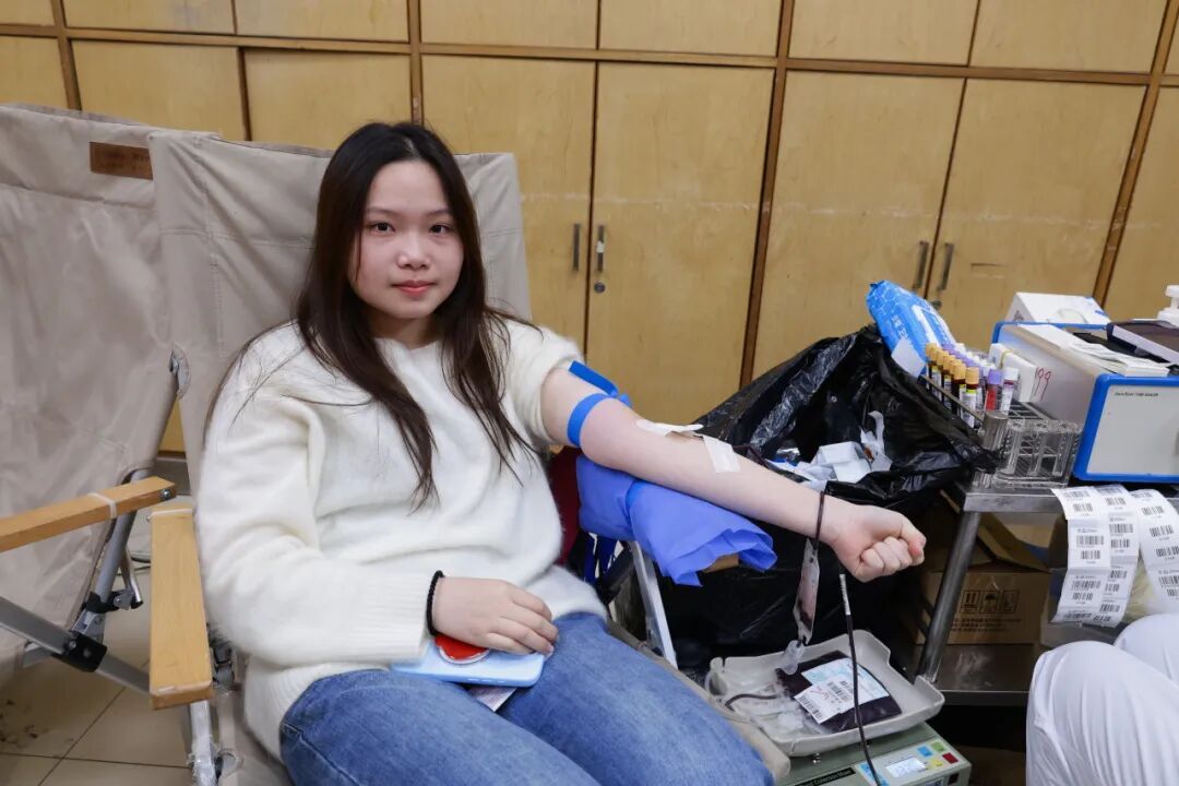 不少同学是第一次献血,尽管有些紧张,但眼神中却透露出不变的勇敢与坚定。献血完成后,同学们喝着大尺度
