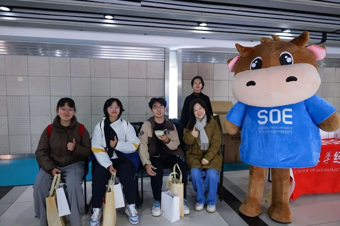 团委的同学们有条不紊地准备着给献血学生的慰问品,在活动开始后为献血学生提供指引。秘书处同学以经小牛的形象出现在现场,以亲切的形象和献血学生拥抱、合影,让同学们心中的紧张情绪烟消云散。