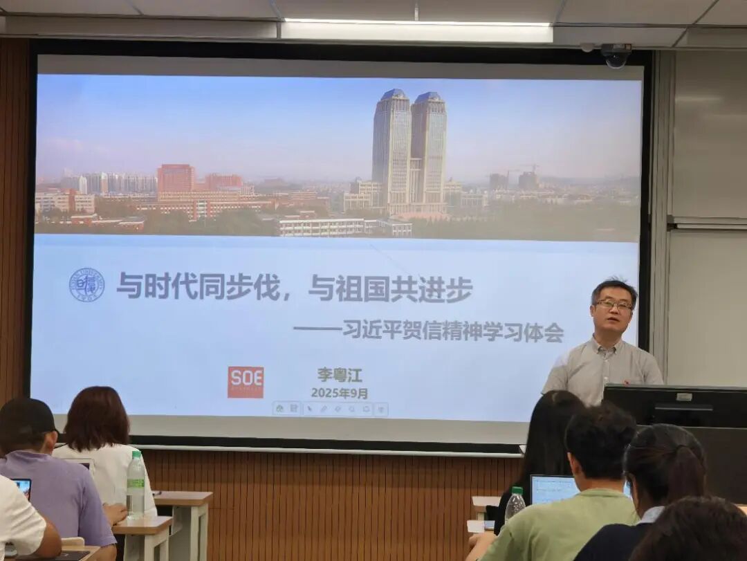 在《与时代同步伐,与祖国共进步——习近平贺信精神学习体会》课程中,李粤江书记围绕习近平贺信精神,系统回顾了大尺度