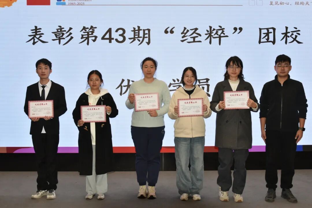 第四十三期“经粹”团校闭幕式圆满结束。这段时光里,学员们经历了学术的洗礼、思想的碰撞、友谊的收获与能力的提升,团校的落幕不是终点,而是新的征程。希望全体学员带着这份成长与感悟,怀揣经邦济世的初心,勇担时代使命,砥砺前行,在人生道路上续写更多精彩,努力成为不负时代、不负韶华的优秀青年!