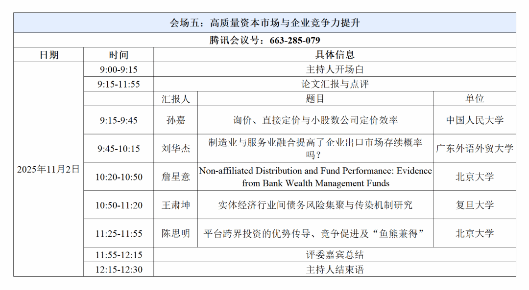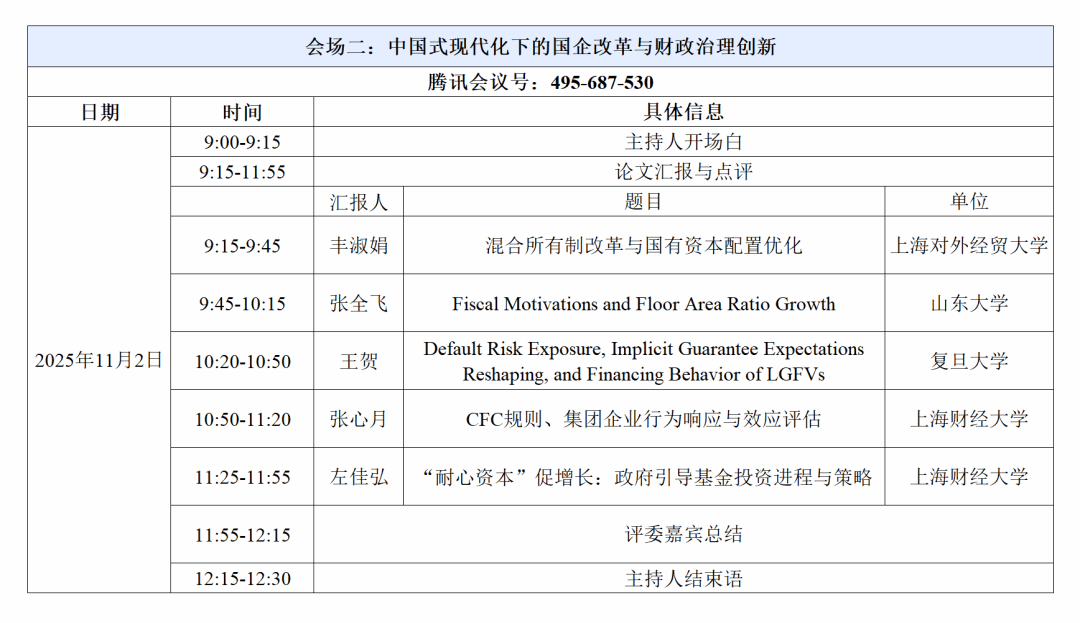 本次平行专题讨论会将分为五个会场,分别为:“智能经济时代的算法治理与行为机制创新”、“中国式现代化下的国企改革与财政治理创新”、“开放经济下的产业升级与全球经济风险传导”、“城乡融合与高质量人口发展”、“高质量资本市场与企业竞争力提升”。此次讨论会邀请了来自大尺度